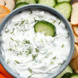 - Freezer: I don’t recommend freezing this dip, as the cucumbers will release too much liquid when thawed. This dip is best served fresh.